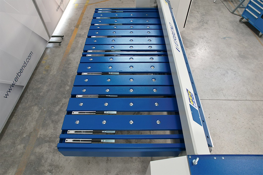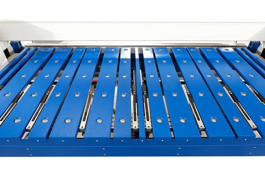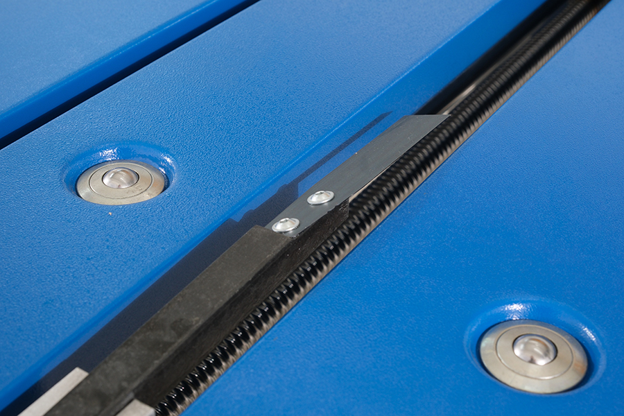 - Standard 750 mm and optional 1000/1500 mm long servo backgauge system with feather grooves and sheet support table