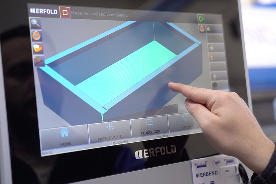• ERFOLD BASIC CNC LBL control software on 15.6” touchscreen controller with swivel arm.